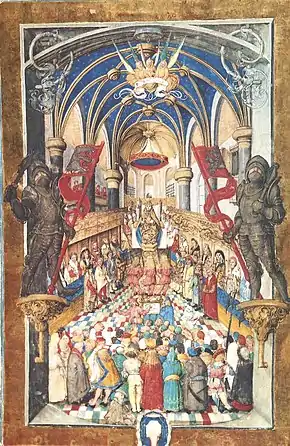 Слідом за цим король посвящав кількох нових лицарів, виходив з собору і їхав на головну площу на конях, де він приймав шану своїх підданих, сидячи на великому троні.