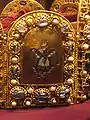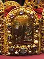 Чотири пластини меншого розміру прикрашені картинами з епізодами з Біблії, в техніці візантійської перегородчастої емалі. Ці чотири пластини, названі Bildplatten, зображують три епізоди зі Старого Завіту та один із Нового Завіту. Три старозавітних показують царів Давида, Соломона та Єзекію з пророком Ісаєю. Новозавітна пластина представляє Ісуса з двома серафимами. Інші чотири пластини, названі кам'яними пластинами (Steinplatten), мають великі розміри і прикрашені виключно дорогоцінним камінням та перлами.