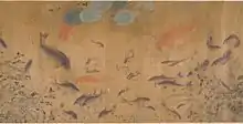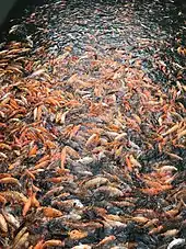 Парчевий короп — одомашнений підвид коропа звичайного (Cyprinus carpio), який був вибірково виведений за кольором. Короп звичайний був завезений з Китаю в Японію, де селективне розведення в 1820-х роках в регіоні Ніїгата призвело до появи парчевого коропа.[50] В японській культурі до парчевого коропа ставляться з любов'ю і вірять, що він приносить удачу. Вони популярні в інших частинах світу як риба для відкритих водойм.