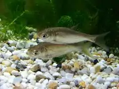 - Cirrhinus molitorella через низьку собівартість розведення в основному споживається бідними прошарками начелення; в основному він продається живим, але його можна сушити і солити.[52] Рибу іноді консервують або готують у вигляді рибних котлет, рибних кульок[53] або дамплінгів. Їх можна знайти у роздрібному продажу в Китаї.[52]
