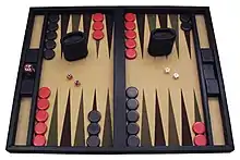 Кожен гравець має 15 шашок. Початкове розташування шашок таке: в кожного з гравців по дві шашки у двадцять четвертому пункті, п'ять у тринадцятому, три у восьмому і п'ять у шостому. Кожен гравець має свою пару гральних кісточок і спеціальний стакан, який використовується для того, щоб перемішувати кісточки. Кубик з нанесеними на його грані числами 2, 4, 8, 16, 32, і 64 використовується, щоб стежити за поточною ставкою гри.