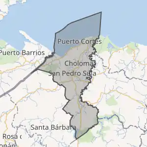 Адміністративний центр — місто Сан-Педро-Сула. Головні міста — Чолома, Ла-Ліма, Віллануева. Найважливіші порти: Пуерто-Кортес та Омоа.