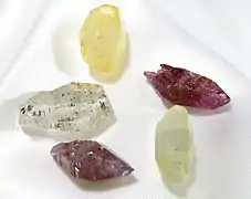 Прозорі відміни забарвленні в червоний (рубін), синій (сапфір), жовтий (східний топаз) та інші кольори.