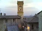 La piazza principale del paese, con il campanile della Chiesa di Santa Maria Assunta.