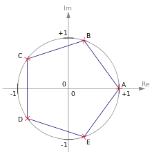 Корені п'ятого степеня з одиниці (вершини пятикутника)
