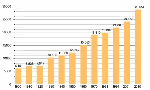 - Poblaciones de hecho desde 1900 hasta 1991. Cifras oficiales de los Censos respectivos. (іспанською). Національний інститут статистики Іспанії (INE). Процитовано 24 червня 2011.