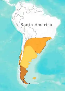 ![]() Бордовий — гніздування (розмноження, розведення), Жовтий — постійне місце проживання, Оранжевий — зимування. | ||||||||||||||||