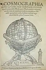 У 1524 році професор математики Інгольштадтського університету Петрус Апіанус (він же — Петер Апіан (Petrus Apianus, Peter Apian, 1495—1552) випустив свою «Космографію», у якій наука космографія збагачена середньовічними знаннями з географії, навігації, астрономії та картографії. З врахуванням виданого у 1533 році за редакцією Еразма Роттердамського грецького тексту «Вступу до географії» учень Аппіануса — голландський фізик, математик та картограф Ґемма Фрізіус (Gemma Frisius, 1508—1555) у 1545 та 1584 роках випустив розширені видання праці свого вчителя. Протягом 16 століття «Cosmographia» Апіануса та Фрізіуса була настільки популярною, що її перевидавали 14 мовами понад 30 разів[2].