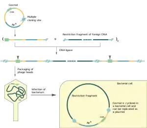 Отримані фагові частинки із рекомбінантними космідами використовують для інфікування клітин кишкової палички. У цитоплазмі косміди циклізуються завдяки з'єднанню липких кінців і далі реплікуються як звичайні плазміди, не проявляючи ніяких функцій фага лямбда. Селекція трансформованих клітин проводиться за маркерним геном присутнім у векторній молекулі.