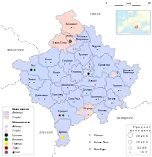 Албанська більшість (92 %), що проживає в Косові, яка й вимагала незалежності, контролює всю територію краю, за винятком декількох громад, більшість в яких становлять серби.