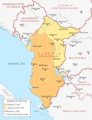 У 1941–1944 більшість території Косова було приєднано до Албанії, що перебувала під контролем Італії Муссоліні. Після виходу фашистської Італії з війни територія була під прямим контролем Німеччини.
