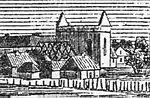 Руїни костелу Святого Якуба на панорамі XIX століття