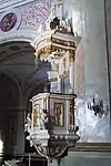 З 1886 р. по 1907 р. парафію очолював здібний адміністратор о. Ришард Розенберг. Саме за нього встановлено бронзові з кришталем люстри, замовлені у Варшаві, кольорові вітражі, а майстри пензля виконали горельєфні картини на теми євангельських «притч». Також були поставлені пам'ятні дошки на честь закінчення ХІХ і початку ХХ століття (зліва) та фундаторська дошка на честь Йоахіма Кароля Потоцького, похованого в крипті під порогом входу до костелу. Він замінив у костелі головний вівтар і амвон, які збереглися й донині.