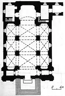 Храм видно здалека, він домінує над іншими будівлями містечка. Планово-просторова структура будівлі вирішена в традиційних формах двобаштових базилік. Мурафський костел отримав характерне для згасаючого бароко декоративне оформлення. Високі башти, які раніше були розкриті для бою дзвонів, фланкують портал з трикутним фронтоном і волютами. Костел поставлений на вирівняному майданчику, який піднятий над вулицею підпірною стіною. Стіні надано напівкруглий виступ, що відповідає паперті, але він з'явився вже наприкінці XVIII століття, коли підпора стіни змінила стару фортечну. Про неї нагадує масивна кутова башта п'ятикутового плану, теж перероблена з колишньої оборонної. Башти стояли колись по чотирьох краях прямокутника фортечних мурів з місцевого вапняку, які огороджуували монастир. Краще збереглися північно-східна шестигранна цеглина башта й ділянки південних і східних стін. І сьогодні видно ланцюг невеликих бійниць, широко розкритих назовні, що тягнуться вздовж стін. З тих же, мабуть, часів зберігся без змін братський корпус келій — двоповерховий, під високим, із заломом, характерний для бароко, чотирьохскатним дахом. Декор будинку простий і підпорядкований традиціям католицьких будівель, де головний акцент падає на фасад. Тут — невеликий ризаліт, декорований пілястрами з коринфськими капітелями і увінчаний фронтоном складних барочних обрисів. Невисокі прямокутні вікна отримали на першому поверсі хвилеподібні мандрики, а на другому — прямі. Збереглися і важкі вхідні двері з міцними засувами, гачками і вічком. За дверима — лунка склепінчастого коридору з дверима в келії, сходи на другий поверх. Мабуть, при відбудові костелу був введений декоративний елемент — глуха барочного малюнку балюстрада, яка стилістично об'єднала частини ансамблю різних часів. І тільки східний, з граненою абсидою фасад костелу, за традицією, позбавлений декору. У центрі, на рівні другого світла — велике овальне надвівтарне вікно з ефектним вітражем. Всередині восьмистопна базиліка оформлена пілястрами коринфського ордену з позолоченими капітелями. Чепурні завитки і волюти обрамовують орган на хорах. В замках архівольтом середнього нефу вміщено герби визначних польських родин: Потоцьких та Грохольських. Примітні старі бронзові з кришталем люстри, вітражі, виконані в 1895 році у Варшаві, горельєфні картини на теми євангельських «притч», масивна різна кафедра. З боків головного входу на пілонах вміщено пам'ятні дошки: на честь закінчення ХІХ і початку ХХ століття (зліва) та фундаторська дошка на честь Йоахіма Кароля Потоцького, похованого в крипті під порогом входу до костелу.