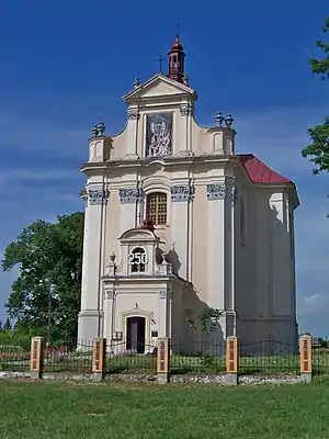 На думку дослідника Збігнева Горнунґа, взірцем для споруди був костел у Годовиці, споруджений за проектом архітектора Бернарда Меретина;[4] Франциск Оленський був автором статуй на високих імпостах головного вівтаря костелу, виконаних бл. 1785 року.[5]