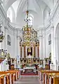 У найвищій частині два ангели та голуб Святого Духа у променистій обрамці. Вівтарі бічні: