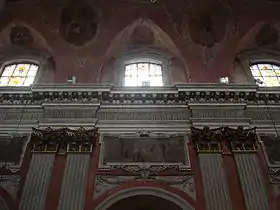 Для інтер'єру характерні вишукані пропорції і пишне оформлення, особливо це помітно у центральній наві з великою кількістю рельєфів, скульптур, фресок.