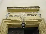 | Chcąc Potockich Pilawa mieć trzy krzyże całe, Dom Krzyżowy na Boska wybudował chwałę. A. D. 1763. |
