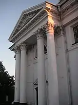 | Загальний вигляд на костел | Фронтон | Центральний вхід костелу | Вигляд збоку |