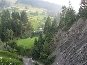 ![]() Головна вулиця села (уздовж потоку Кохан) | |
