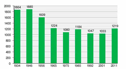За даними перепису населення 2011 року у селі проживали 1219 осіб.