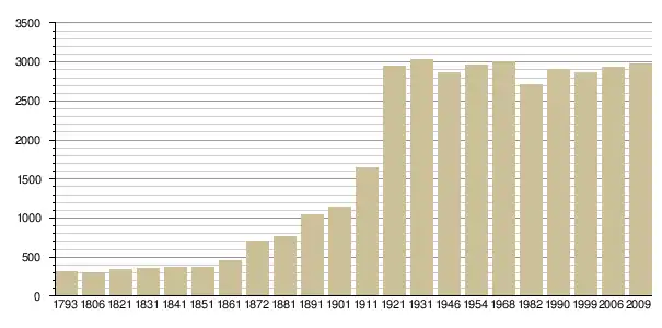 Динаміка населення (base Cassini de l'EHESS pour les nombres retenus jusque 1962[3], base Insee à partir de 1968 (population sans doubles comptes puis population municipale à partir de 2006)[4] · [5] ):