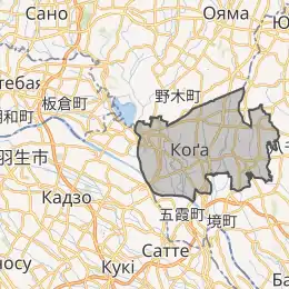 Розташоване в західній частині префектури, в середній течії річок Тоне і Ватарасе. Виникло на основі стародавніх сільських поселень 8 століття, про які згадує найдавніша антологія японської поезії «Манйосю». У 14 — 15 століттях було резиденцією коґівських сьоґунів, намісників сьоґунату Муроматі в Східній Японії. В ранньому новому часі стало призамковим містечком автономного уділу Коґа-хан, яким володіли самурайські роди Оґасавара і Дой, і яке розміщувалося на Ніккоському шляху. Отримало статус міста 1 серпня 1950 року. Основою економіки сучасної є машинобудування, виробництво електроприладів і хімічна промисловість, туризм. Станом на 1 жовтня 2007[1] площа міста становила 123,58 км². Станом на 1 серпня 2008[2] населення міста становило 144 294 осіб.
