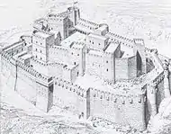 Замок розширювався з 1150 по 1250 рік і з часом міг розмістити двотисячний ґарнізон. Навколо фортеці була побудована стіна товщиною від 3 до 30 метрів з сімома сторожовими баштами, одну з яких займав Великий Магістр.