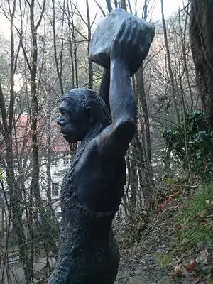 Особливо слід звернути увагу на те, як реконструйовано місце знахідок для публічного показу. Реконструкцію неандертальця було проведено в дусі тодішніх стереотипів щодо доісторичних людей. Їх зображували як дурних і дефективних істот. Це цілком хибне уявлення. Неандертальці були на дуже високій стадії розвитку, здатні виготовляти мудровані знаряддя, піклувалися про хворих, ховали померлих, спілкувалися якимсь різновидом мови та мали ознаки релігійності.