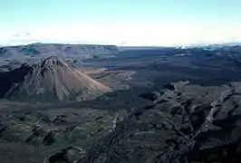 Потоки лави під час хребтового виверження на Краплі у 1984 році
