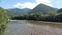 Річка Тересва в с.Красна. Вид на гори Усть-Чорної