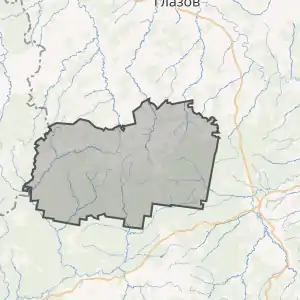 Район розташований на північному заході республіки. Його площа становить 1 860,1 км² і з цим показником він займає 12 місце серед усіх районів (їх 25) Удмуртії. Він межує із Кіровською областю — на заході з Унінським районом; та з іншими районами Удмуртії — Юкаменським та Глазовським районами на півночі, Балезінським на сході, Селтинським на півдні та Ігринським районом на півдні та південному сході.