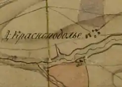 На карті "Детальна мілітерная карта по кордоні Росії з Туреччиною" виданої 1800 року в Санкт-Петербурзі на місці нинішнього села Красноподілля вказано мале село Краснопілля.