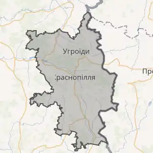 До складу громади входять 2 смт (Краснопілля, Угроїди), 2 селища (Миропільське, Михайлівське) і 24 села: Веселе, Виднівка, Воропай, Гапонівка, Глибне, Думівка, Лозове, Мар'їне, Марченки, Михайлівка, Мозкове, Наумівка, Новодмитрівка, Окіп, Осоївка, Петрушівка, Проходи, Самотоївка, Таратутине, Тур'я, Хвойне, Хмелівка, Чернеччина, Ясенок.