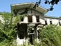 Головний будинок мав два поверхи з двоскатним дахом з партерами. А веранда була з односкатним, на колонах. В лівому куті головної споруди були колони, а також арки і закрита тераса.