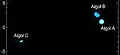 - HD 188753 — потрійна зоря, розташована приблизно за 149 світлових років від Сонця[уточнити]. Система складається з HD 188753 А (жовтий карлик), HD 188753 В (помаранчевий карлик) та HD 188753 С (червоний карлик). Компоненти В та С обертаються одна навколо одної з періодом близько 156 діб. Період же обертання компоненти А навколо них значно більший і становить 25,7 земного року.[44]