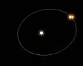 - α Центавра — потрійна зоря, що також складається з трьох компонент: α Центавра А, α Центавра В та α Центавра С.[42] Компоненти А та В (у компонента А фізичні параметри близькі до сонячних, компонент В трохи тьмяніший) утворюють тісну систему. Відстань між компонентами коливається від 11 до 36 астрономічних одиниць, що пов'язано з витягнутістю орбіти. На відстані близько 15 тисяч астрономічних одиниць від системи АВ перебуває компонент С, червоний карлик, більш відомий як Проксима Центавра — найближча до нас зоря. Період обертання Проксими навколо системи АВ, за підрахунками, становить близько 500 тисяч років.[43]