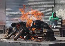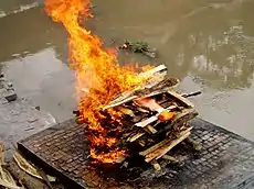 Крім крематоріїв, у індуїстів поширене в даний час спалювання на багатті. Особливо популярне спалення на берегах Гангу у Варанасі на Ґхат (дивись також статтю антьєшті). Ритуал саті в даний час застосовується дуже рідко. Але таке спалювання не є кремацією в повному сучасному розумінні цього слова, оскільки таке відкрите спалювання на багатті закінчується на стадії обвуглювання м'язової тканини, після чого недогорілі останки скидаються, як правило, в річку Ганг і стають у подальшому здобиччю гідробіонтів — трупоїдів.