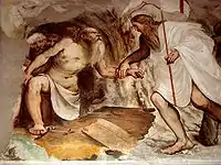Джироламо Романіно. «Зшестя Христа в безодню», залишки фрески, церква Санта Марія делла Неве, Пізонья, Італія