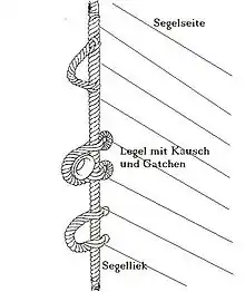Кренгельс може також виконуватися петлями («калишками») на ліктросі, які утворюють перед його пришиванням до вітрила.