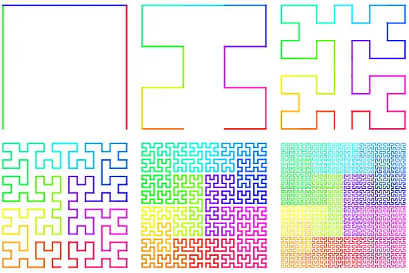 є -м наближенням до граничної кривої. Евклідова довжина кривої дорівнює , тобто росте експоненціально з , в той же час сама крива завжди лишається в межах квадрата з скінченною площею.