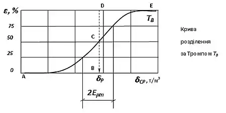 Середнім ймовірним відхиленням Еpm від густини розділення називають напіврізницю густин точок кривої розділення ТВ, які відповідають вилученню 75 і 25 % :