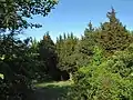 Навесні квітне сортовий бузок, спірея Вангутта і японська. Невелика кількість хеномелесу Маулея (айви японської), калини гордовини залишилась під заростями сніжноягідника прирічкового в центральній частині масиву. Можна побачити і міхурник деревовидний, карагану дерев'янисту. Донедавна можна було побачити квітучу гліцинію. У північній частині парку поблизу військового містечка розташовані посадки дубу звичайного та дубу червоного. У західній частині парку росте верба Матсуда. Трав'янисті рослини представлені гравілатом міським, веронікою весняною, підмаренником чіпким, фіалкою запашною, великим числом видів злаків та складноцвітих.