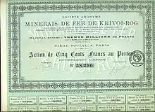 - «Залізні руди Кривого Рогу» — близько 3,3 млн пудів;