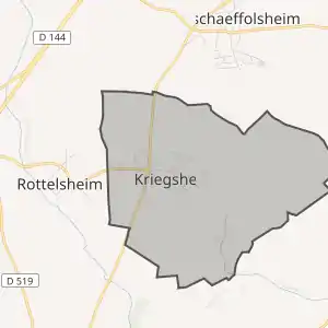 - Розташування муніципалітету Кригсайм на мапі Франції та сусідні муніципалітети
