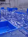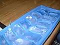 Малі крижані шипи можуть формуватись штучно у лотку для кубиків льоду з дистильованої води в домашніх холодильниках. Формування такого шипу таке ж як і його формування у природі — зменшення об'єму всередині куба збільшує тиск води проштовхуючи її крізь дірку на поверхні. Ріст такого шипу припиняється коли верхівка замерзає повністю, що стається набагато раніше ніж замерзання всієї води у кубі.[2] Цей метод дає маленькі шипи, здебільшого круглі або трикутні у поперечному перерізі, з гострим кінцем. Експерименти цим методом відкрили що шипи мають менше шансів формуватись якщо використовувати не дистильовану воду.[10] Це ставить під питання як формуються крижані шипи у воді з під крану чи дощовій воді, і було запропоновано що у випадку малих шипів домішки концентруються в незамерзлій частині на верху трубки знижуючи швидкість замерзання. Проте окрім випадків коли виростають дуже великі шипи, має існувати інший механізм який би усував домішки які накопичуються на вершині трубки яка росте. Або домішки заштовхуються у пакети які замерзають повільніше, або можливо конвекційний потік, який був би незначним у малих, штучно вирощених шипах, замінює воду на вершині трубки свіжою водою з під льоду.[1]
