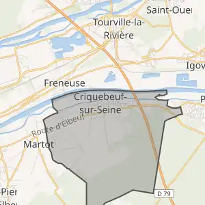 - Criquebeuf-sur-Seine sur le site de l'Insee, наведено за французькою вікіпедією