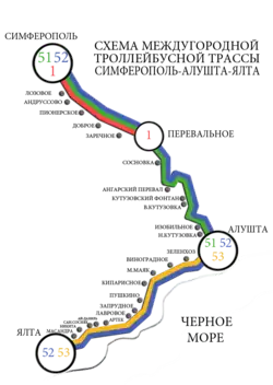 55А Сімферополь (аеропорт) Алушта (тролейбусна станція) Ялта (тролейбусна станція)