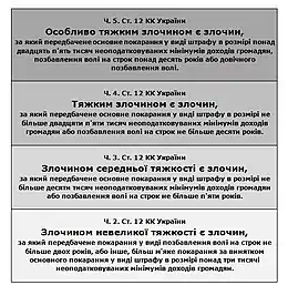 - Кримінальний Кодекс України — основний систематизований законодавчий акт, який об'єднує всю сукупність кримінально-правових норм.