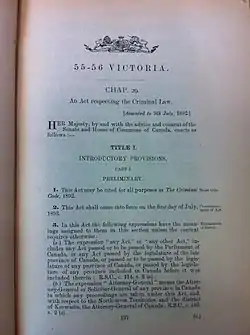 Канадський законодавець тим часом йшов власним шляхом систематизації кримінальних законів. Наприкінці 1880-х років тодішньому міністру юстиції Канади Джону Томпсону було запропоновано розробити відповідний законопроект.